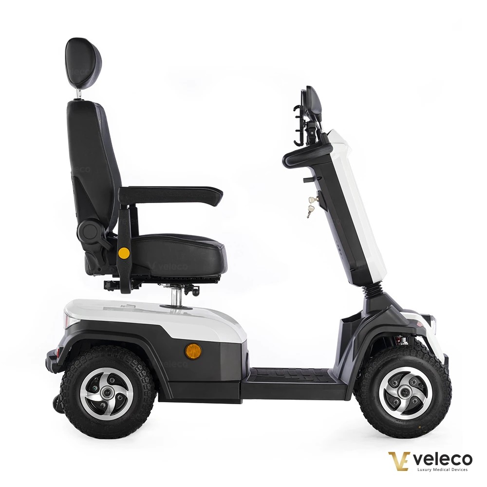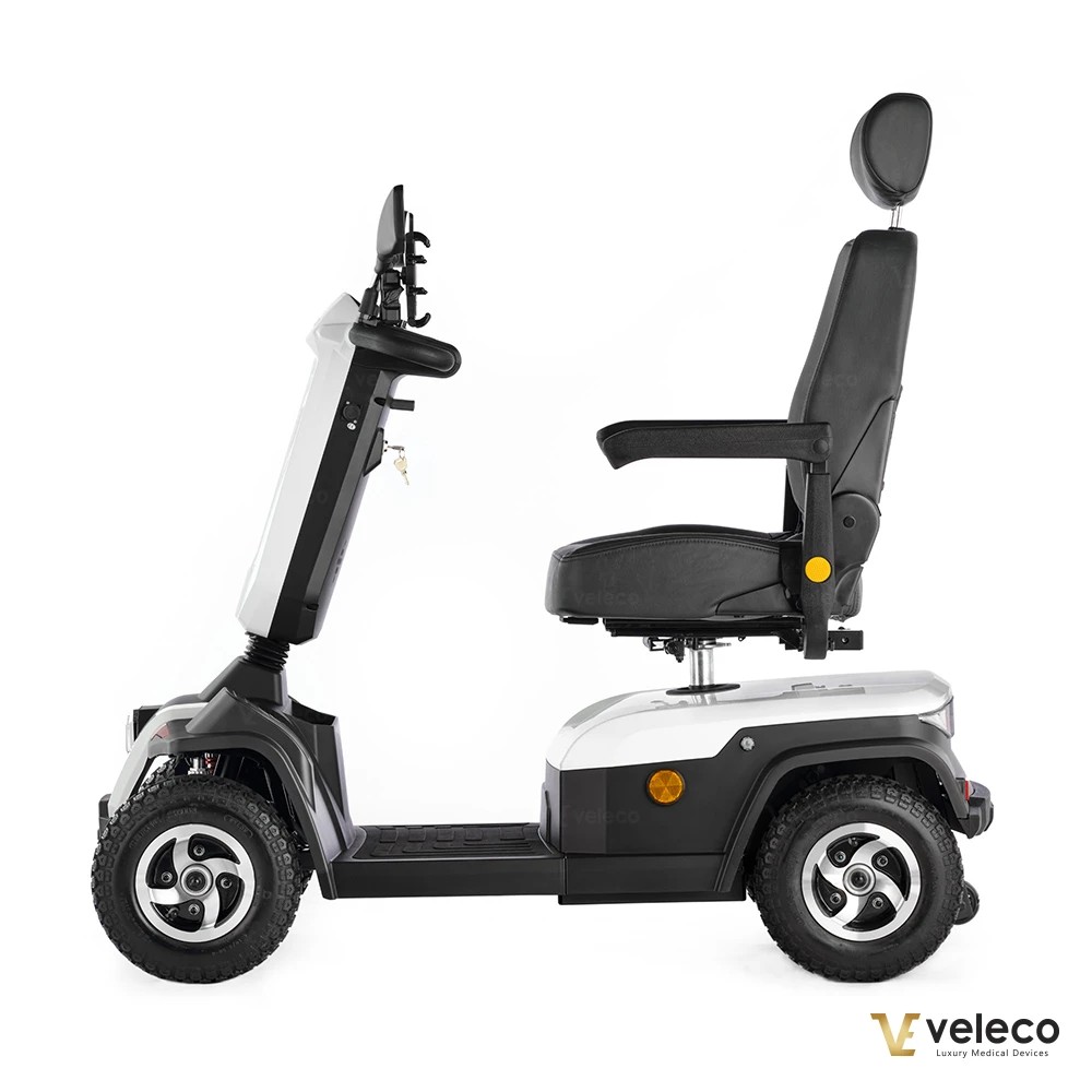 Wenn Sie eine Kombination aus Komfort und Funktionalität suchen, ist das Veleco Sharpy Elektromobil die ideale Wahl für Sie. Entwickelt mit dem Fokus auf Benutzerfreundlichkeit, bietet er einen bequemen und drehbaren Kapitänssitz, der das Ein- und Aussteigen erleichtert und gleichzeitig außergewöhnlichen Komfort während der Fahrt bietet. Ob Sie durch enge Räume navigieren oder draußen unterwegs sind, der Sharpy liefert zuverlässige Leistung mit seinem robusten Design, leistungsstarken Motor und praktischen Funktionen und ist somit der ideale Begleiter für die tägliche Mobilität.